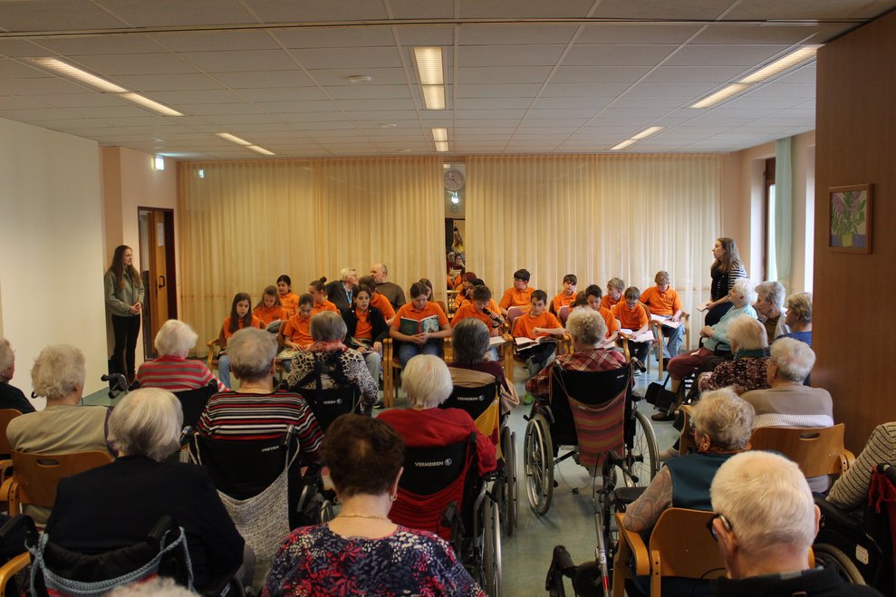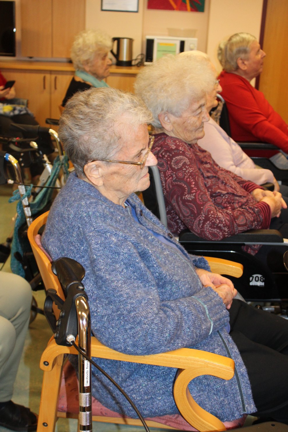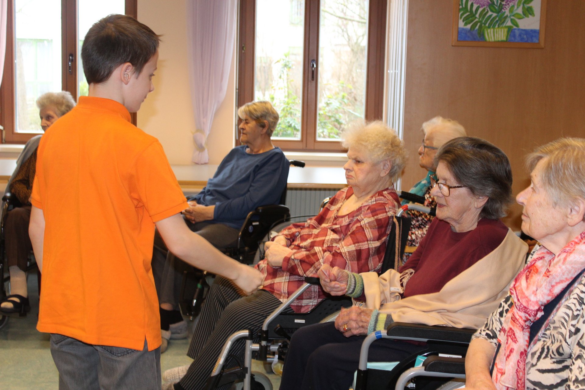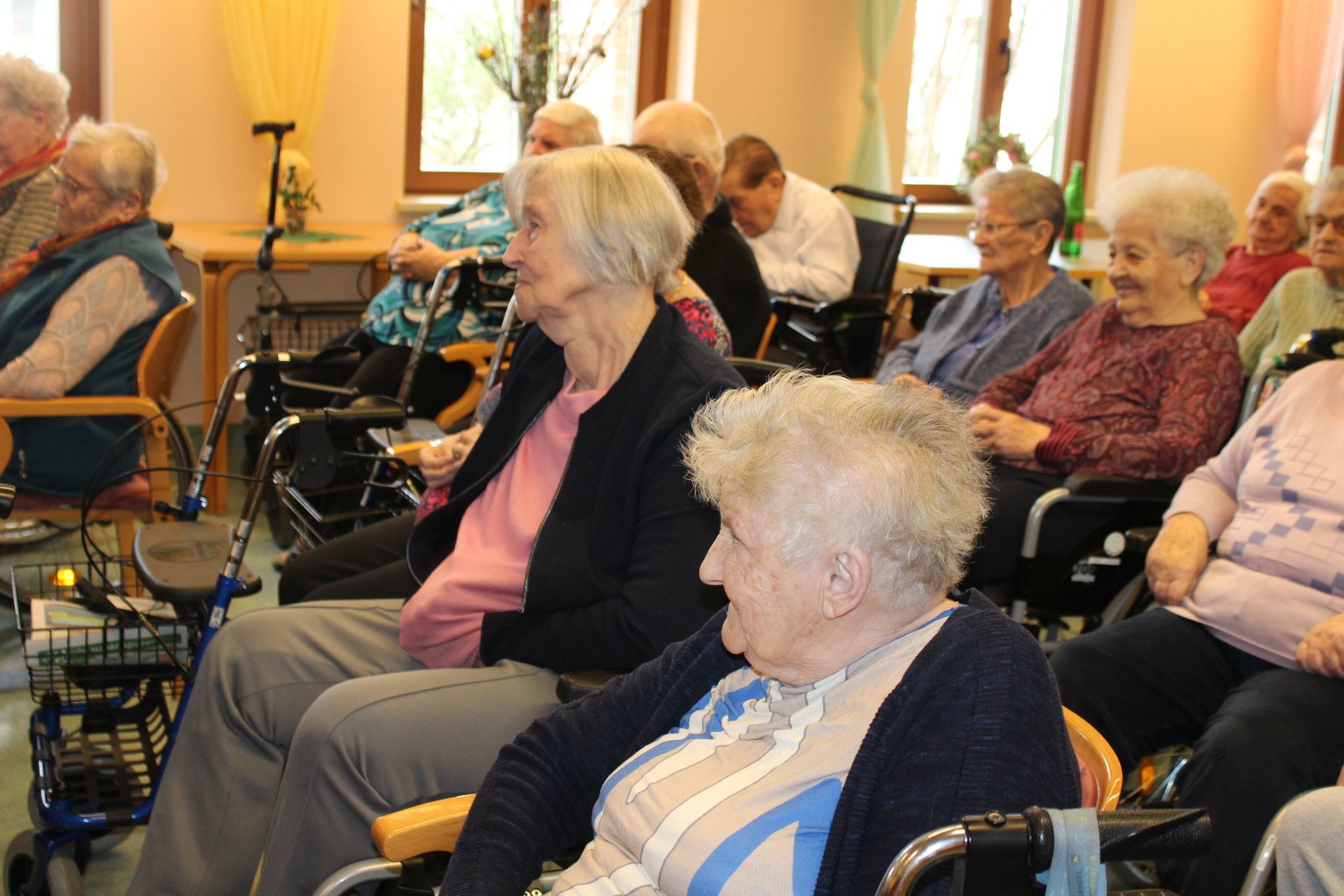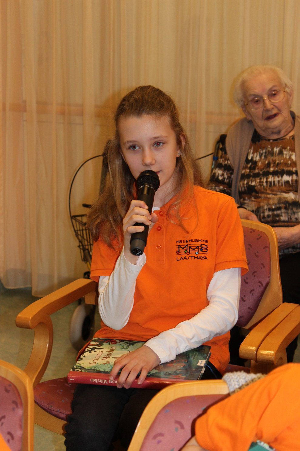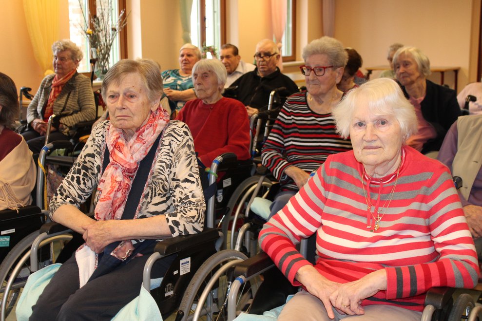 Eine Klasse der Musikmittelschule Laa kam zur Märchenstunde in unser Haus. Die Schülerinnen und Schüler holten unsere Bewohnerinnen und Bewohner von den Wohnbereichen in den Spiegelsaal. Es wurde eine große Runde. Viele bekannte Märchen wurden vorgelesen und es wurde gebannt zugehört. Man kann sich ja schon gar nicht mehr an die Märchen erinnern, stellten die Bewohnerinnen und Bewohner fest. Zur Erinnerung überreichten die Schülerinnen und Schüler unseren Bewohnerinnen und Bewohnern ein Lesezeichen. Danach wurden wieder alle auf die Wohnbereiche gebracht und es gab noch das eine oder andere Erinnerungsfoto.
