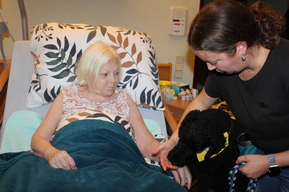 Regelmäßig kommt Frau Birgit mit ihrem Therapiehund Q ins Haus.